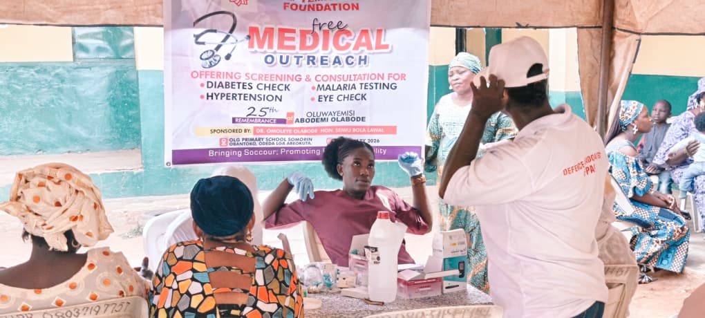 Held at the OLG Primary School in Somorin, the outreach was organised in loving memory of Oluwayemisi Abodemi Olabode. It aimed to bring immediate healthcare access to the doorsteps of residents, aligning with the foundation’s core mission of “Bringing Succour; Promoting Peace & Stability.”
